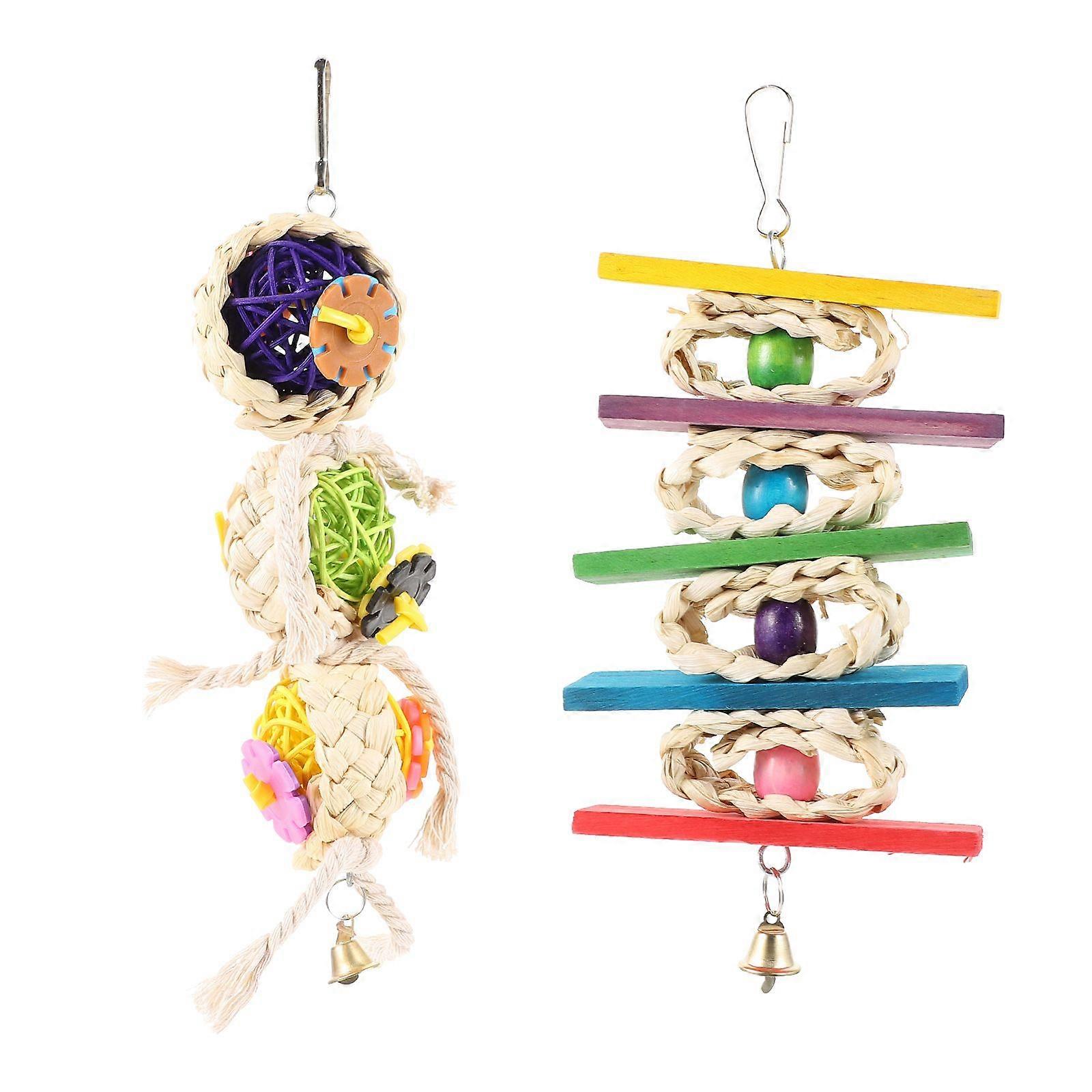 2 Pcs Rattan Woven Parrot Hanging Toys Parrot Chewing Toy Parrot Bite Toys