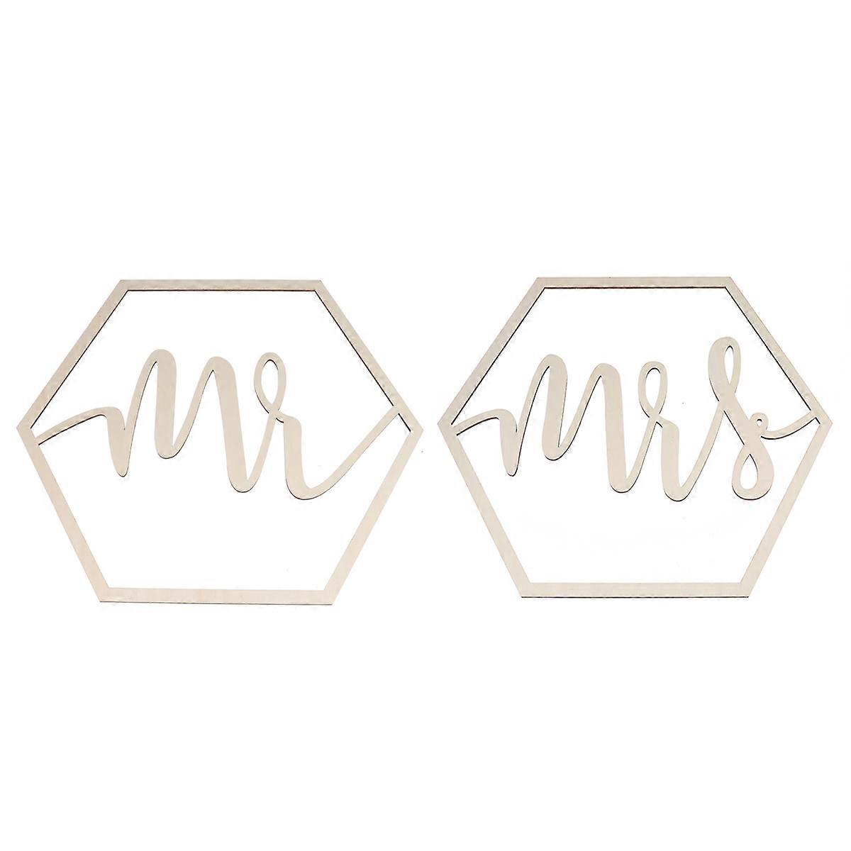 2pcs Mr Mrs Wedding Wood Chair Sign Hollow Hexagonal Chair Flag Wedding Party Decoration