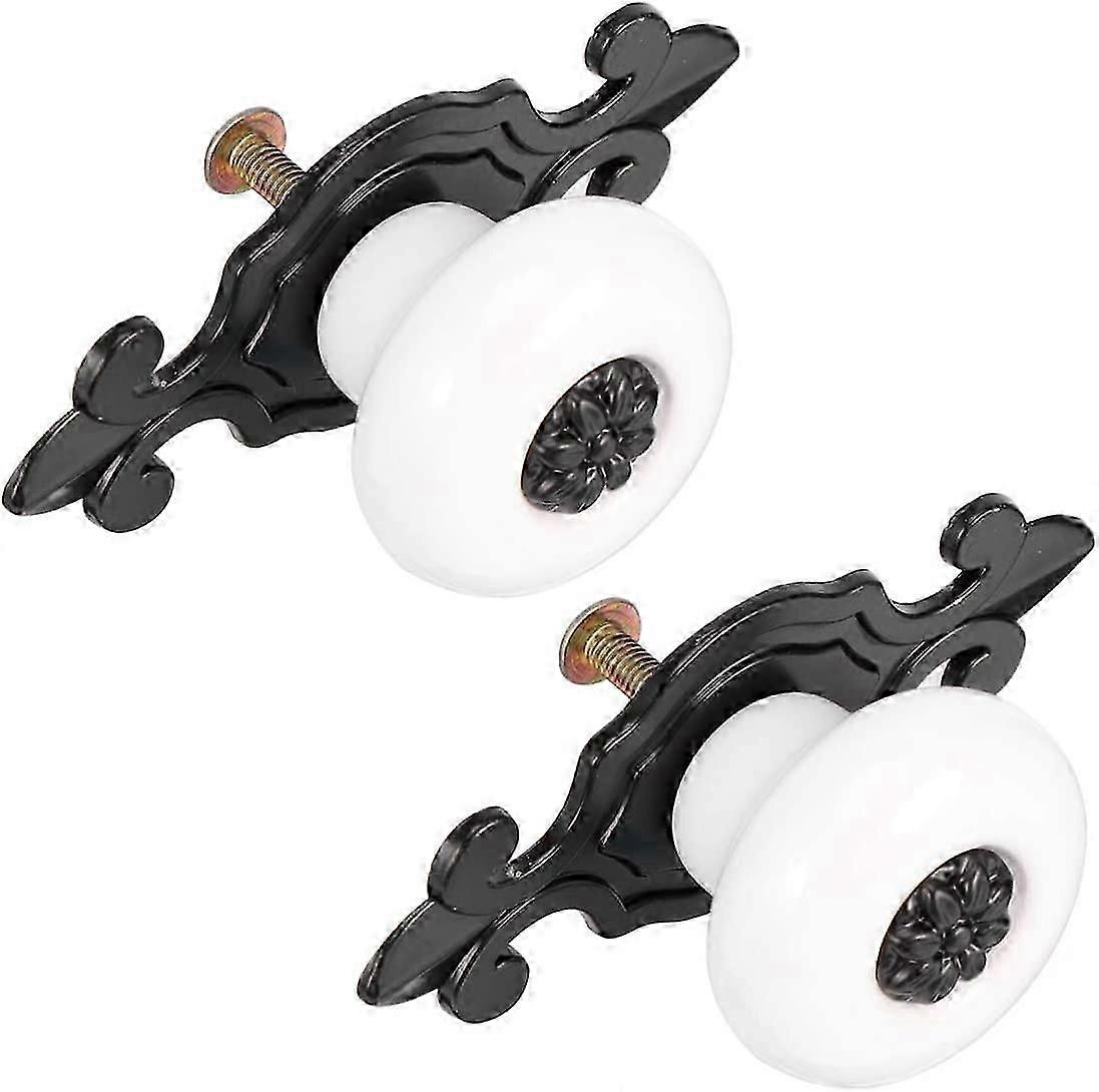 2 Pcs Ceramic Drawer Handles Metal Cupboard Handles Vintage Retro Flower Pattern Door Handle