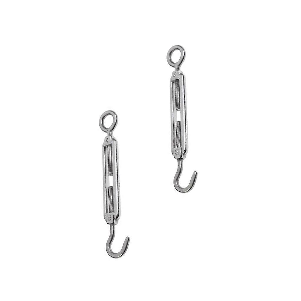 Description: Marine Grade Stainless Steel Hook/Eye Straining Screw Adjusters. These are also known as Tensioners, Turn Buckles, Straining Screws, Barrel Strainers, or Open Body Rigging Screws. Has strong construction and resists rust and corrosion. Open body style. Suitable for outdoor applications. Specification: Material: 304 Stainless Steel Color: Silver Size: Size Chart: Length: approx. 9.5cm / 3.7inch Round Hole Inner Diameter: approx. 0.8cm / 0.3inch Package Includes: 2 Piece Hook & Eye Turnbuckle