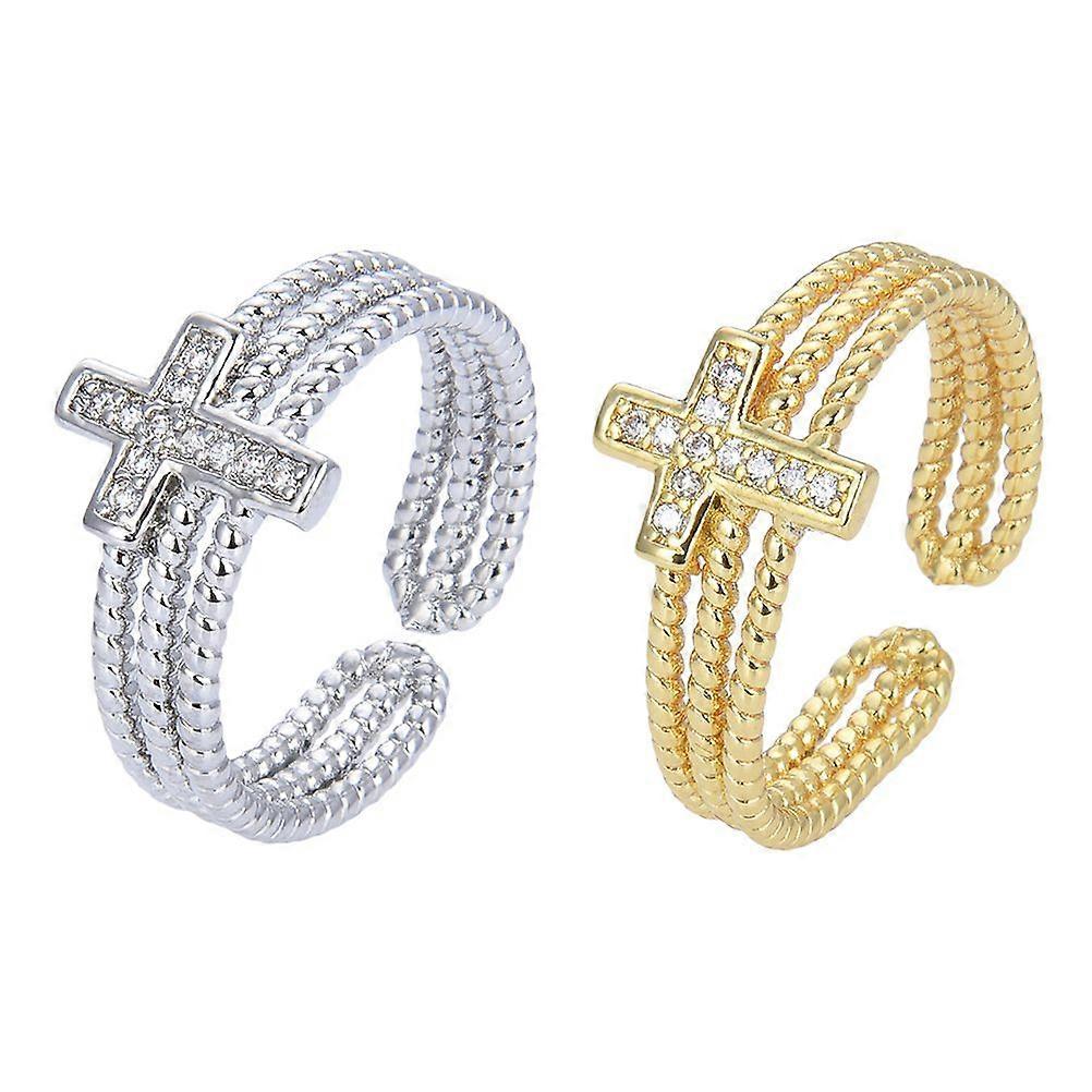 2pcs Rhinestone Cross Rings Adjustable Open Rings Finger Rings for Women