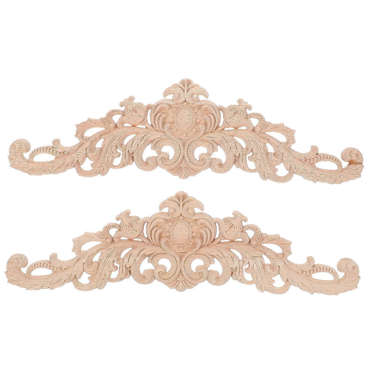 2Pcs Wooden Carved Applique Decorative Furniture Carved Onlay Home Adorn Khaki