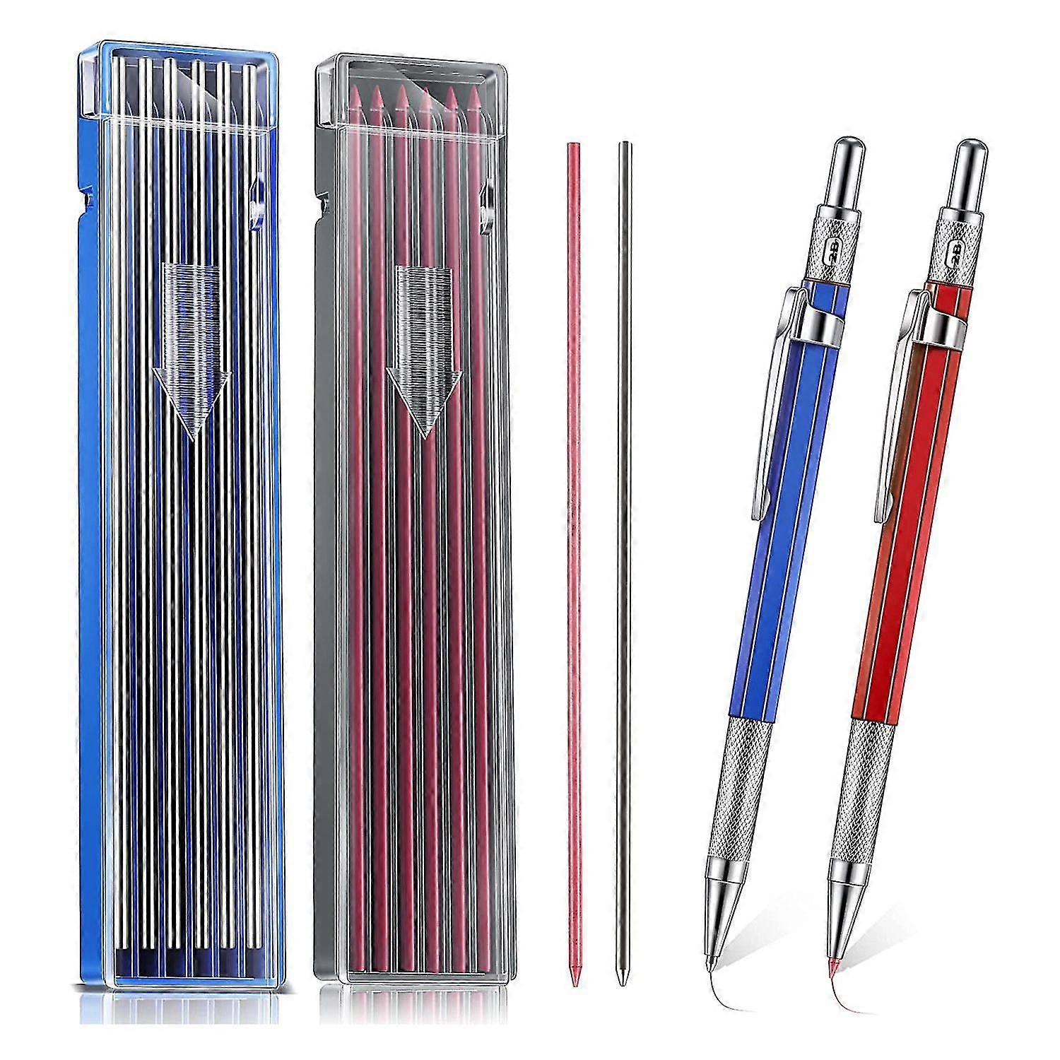 2 Pcs Streak Welders Pencil with 24 Pcs 2mm Refills Mechanical Pencil with Built in Sharpener Carpenter Pencils