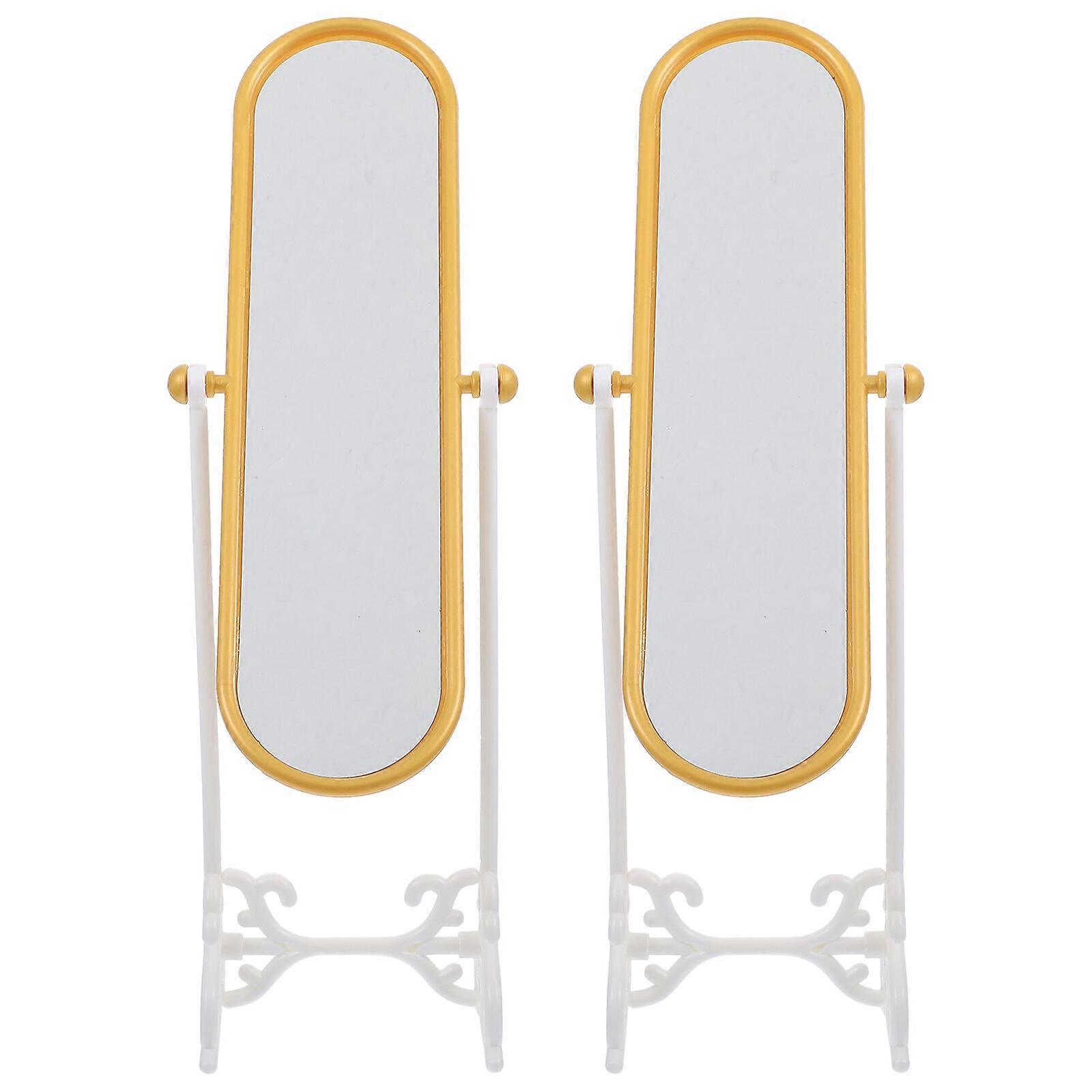 2pcs Dollhouse Miniature Dressing Mirrors Tiny House Mini Mirrors Toys Kids' Dollhouse Ornaments