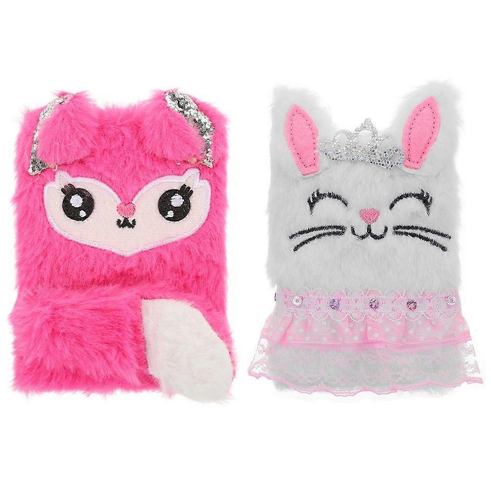 2pcs Fluffy Writing Book Fox and Bunny Diary Girls Journal Fuzzy Journal Easter Kids Gift