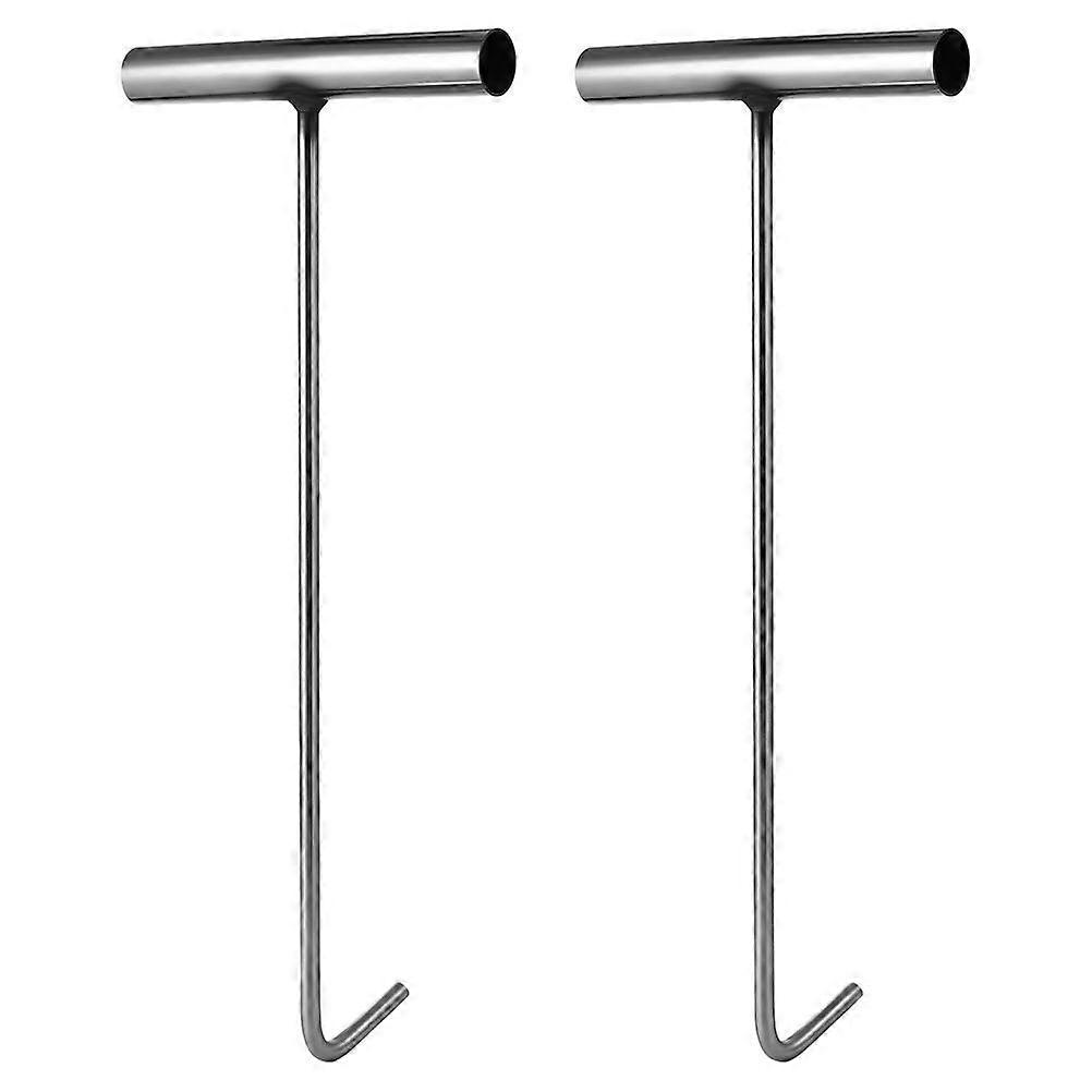 2pcs Manhole Cover Hooks Stainless Steel Hook T-shaped Well Lid Hook Rolling Door Lifting Hook