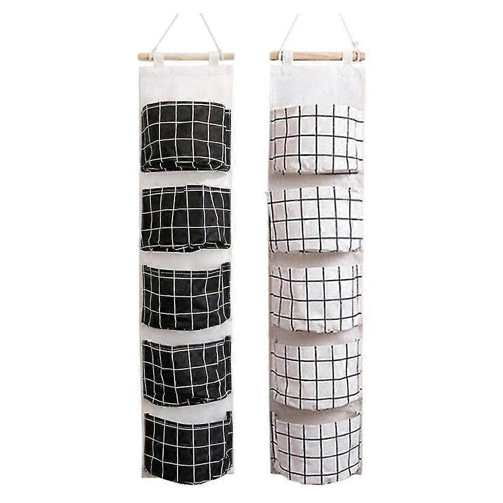 2pcs Over The Door Hanging , Waterproof Wall Closet Organizer Linen Fabric Stylish Mount Organizer With 5 Pockets For Bedroom Bathroom (bla