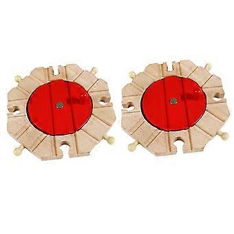 2pcs Wooden Trains Railway Set Compatible Accessories Turntable