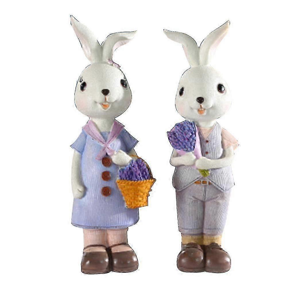 2pcs Cute Easter Rabbit Bunny Ornaments Micro Landscape Figurine Resin Crafts
