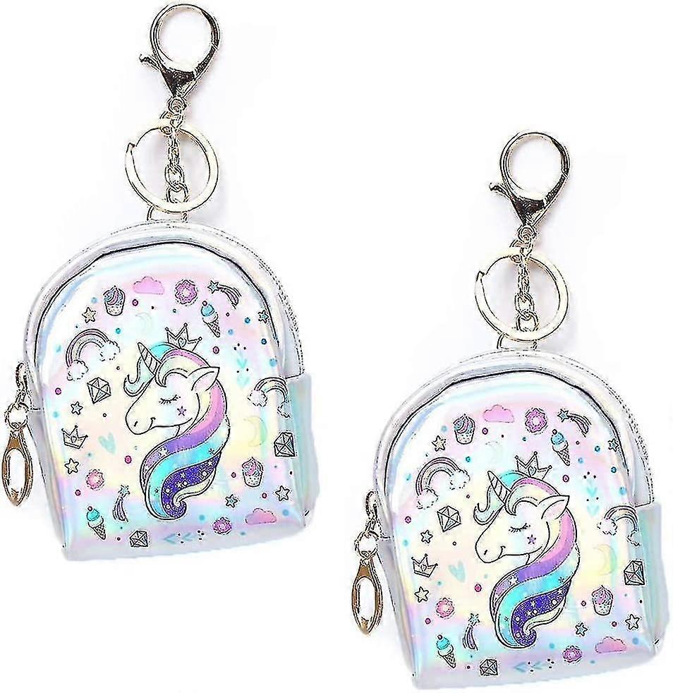 2 Pieces Cute Unicorn Coin Purse Wallet, Pu Leather With Zipper For Women And Girls