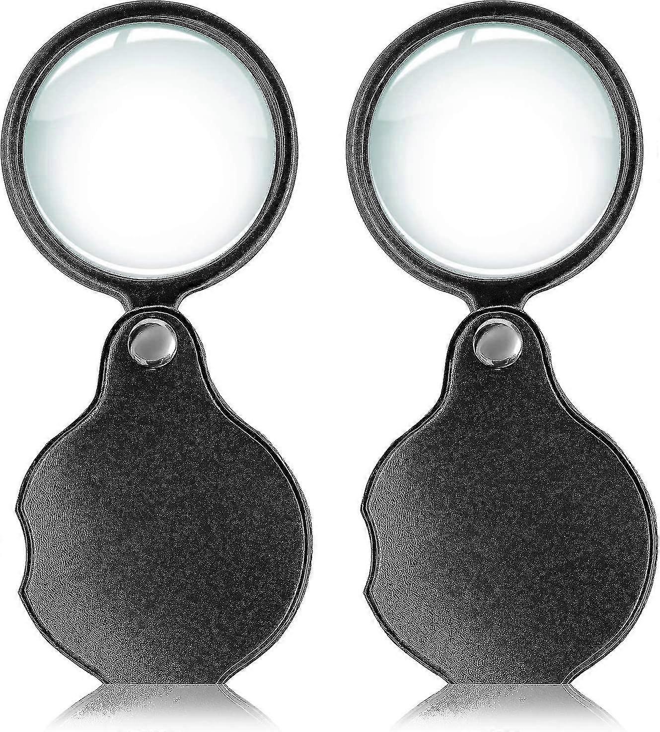 2pcs 10x Small Pocket Magnify Glass Premium Folding Mini Magnifying Glass With Rotating Protective Sheath, Apply To Reading, Science, Jewelry, Hobbies