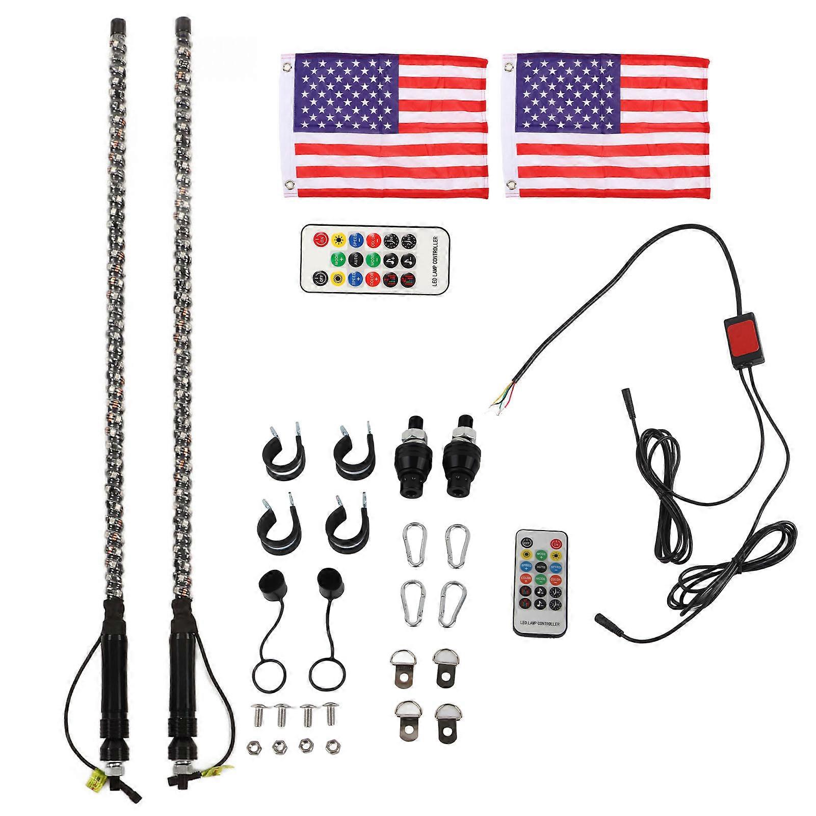 2 Pcs LED Whip Lights 20 Colors Waterproof Off Roaded Flagpole RGB Light with Remote Control Flag