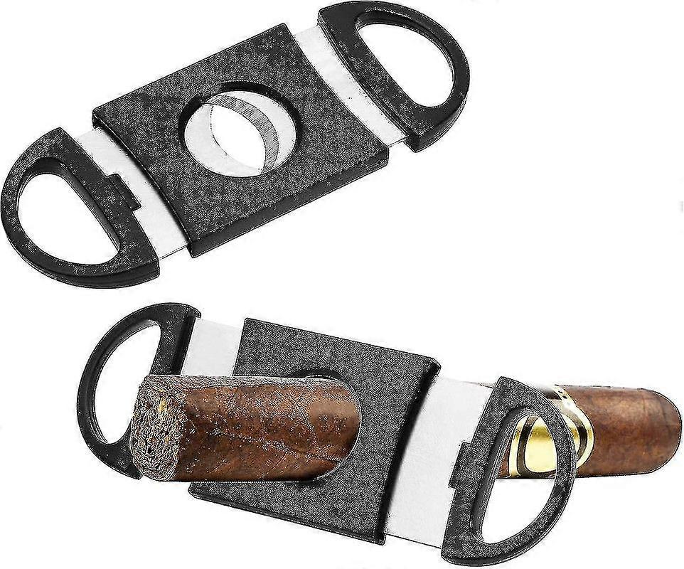 2 Cigar Cutters (black), Double Guillotine Cutter, Cigar Scissors With Plastic Handles, Stainless Steel Cigar Tools, Cigar Accessories To Fit Most Siz
