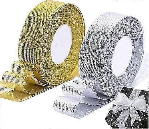 2 rolls of 25 size wide sparkling ribbons (2cm gold, silver) ribbons Gold ribbons Christmas ribbons Decorative ribbons for gift packaging, making bows