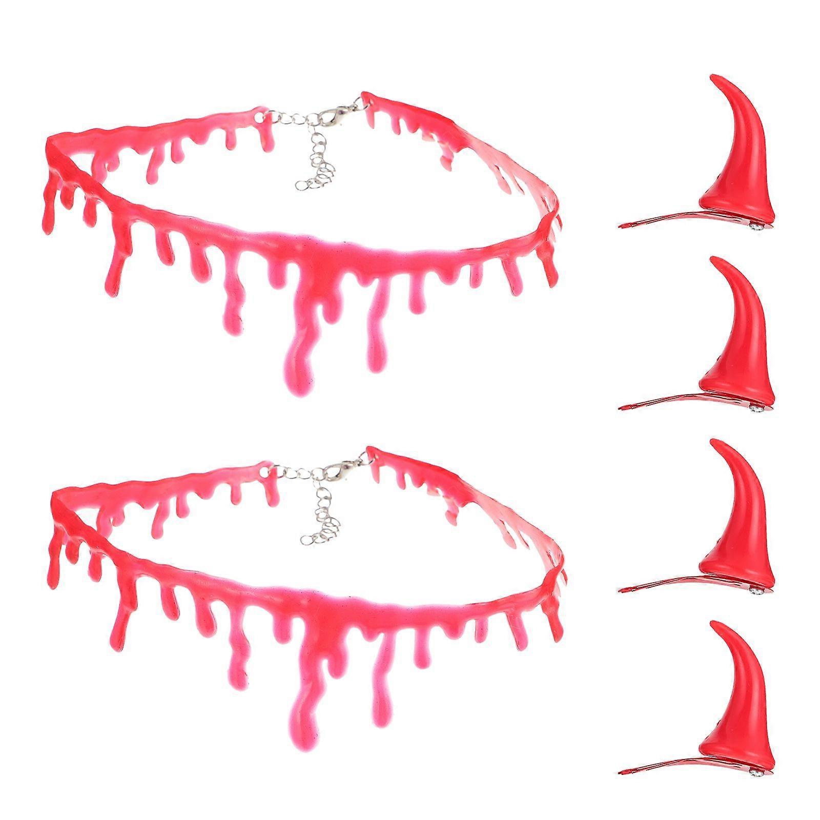 2 Sets Halloween Bloody Necklace Red Horn Hairpin Halloween Accessories