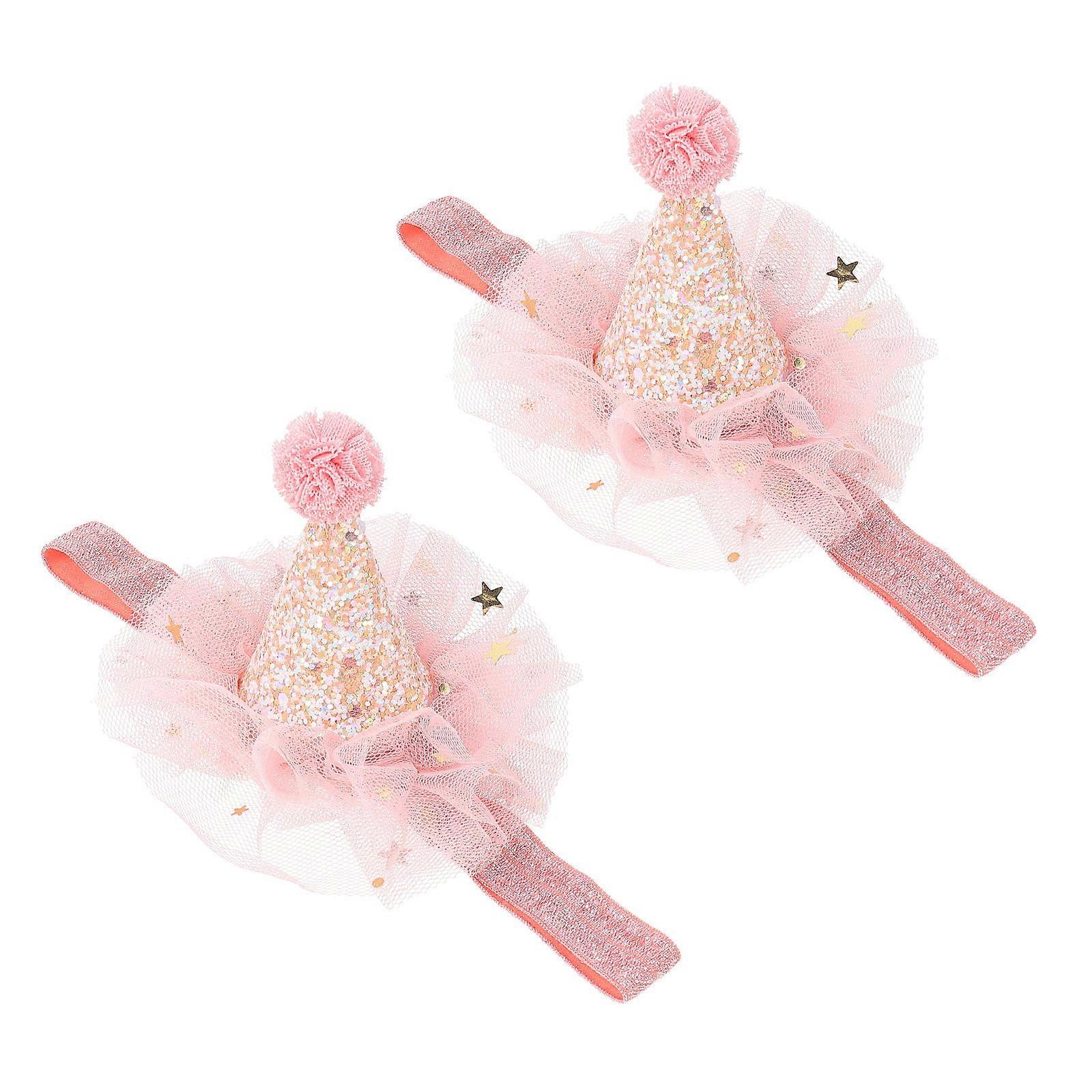 2Set Kids Birthday Mesh Yarn Hats For Birthday Parties Stylish Decoration And Celebration In Pink