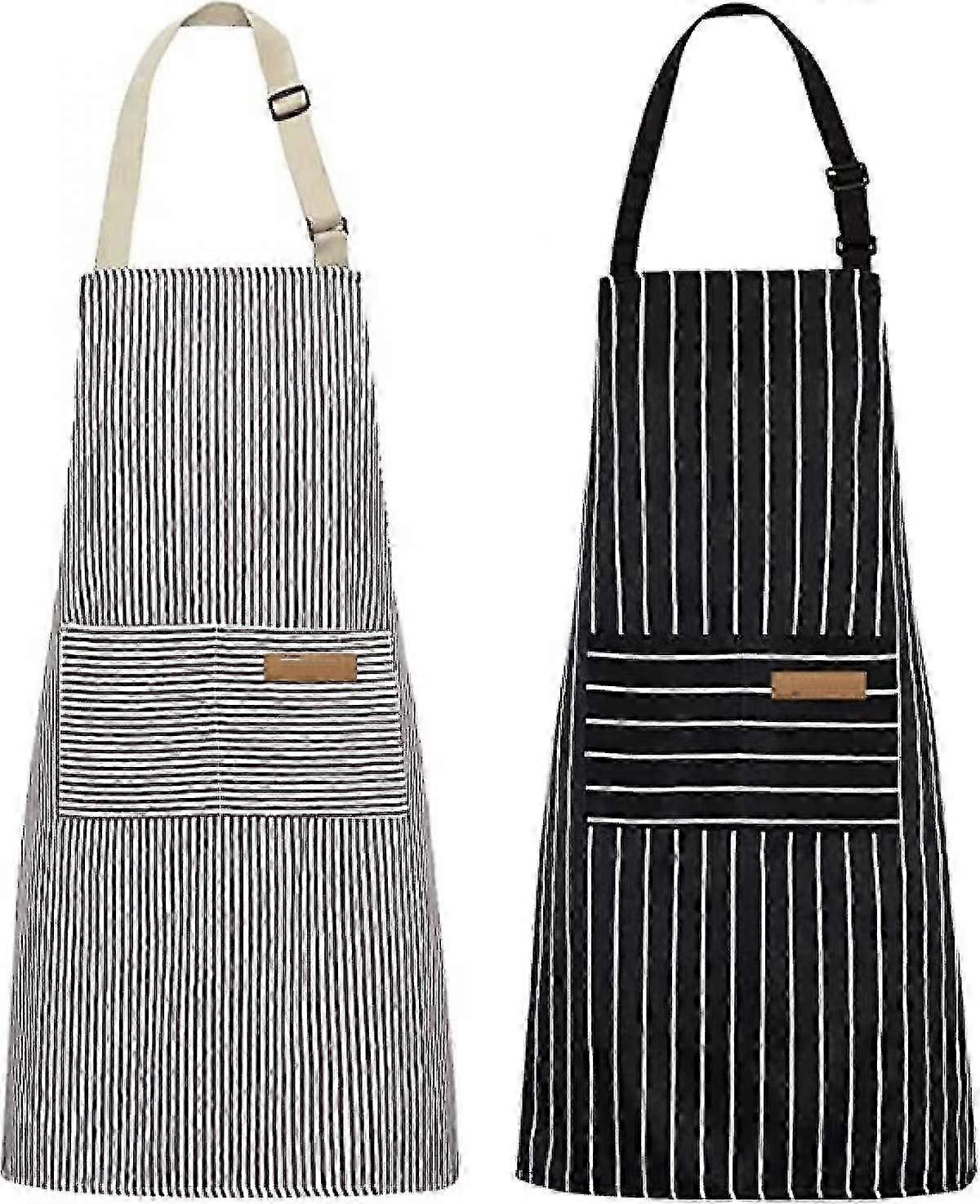 2 Pack Kitchen Cooking Aprons, Adjustable Soft Chef Apron with 2 Pockets for Men Women (Black/Brown Stripes)