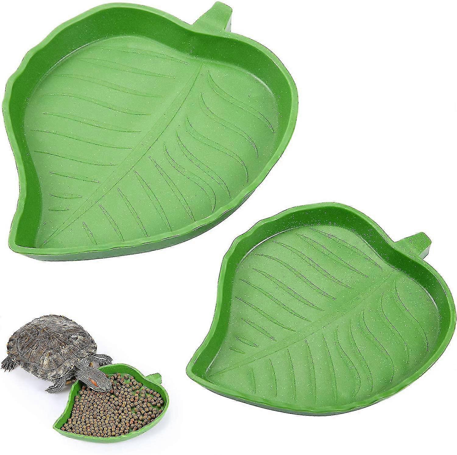 Dish Leaf-shaped Reptile Water Food Bowl For Drinking And Eating Turtle Corn Snake Crawling Pet (2 Pieces, Green)