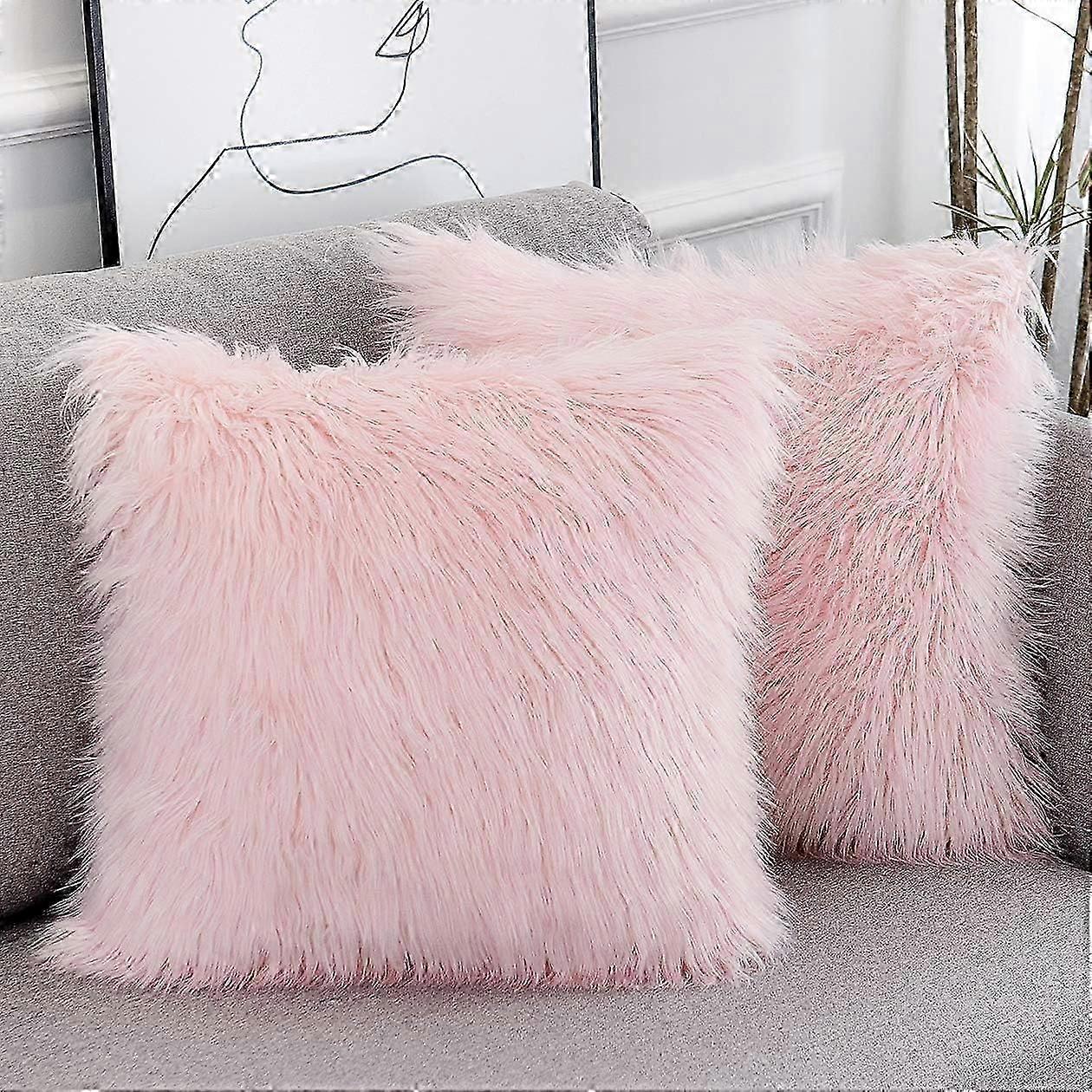 Set of 2 Pink Fluffy Pillow Covers New Luxury Series Merino Style Blush Faux Fur Decorative Throw Pillow Covers Square Fuzzy Cushion Case 18x18 Inch