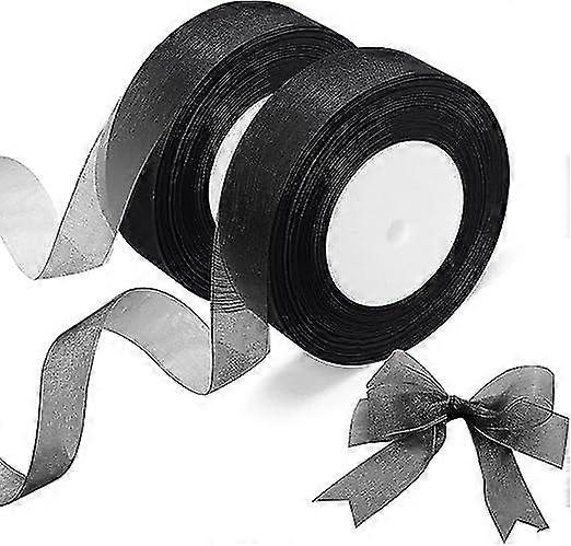 2 Rolls Of Organza Ribbon (black Ribbon), Transparent Chiffon Ribbon, Each 20mm X 45m, Used For Diy Crafts, Ribbon For Gift Packaging, Birthday Party