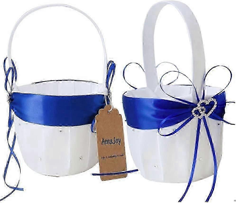 2pcs Beach Wedding Flower Girl Basket White and Royal Blue Flower Basket Double Heart Rhinestone Decor 2025