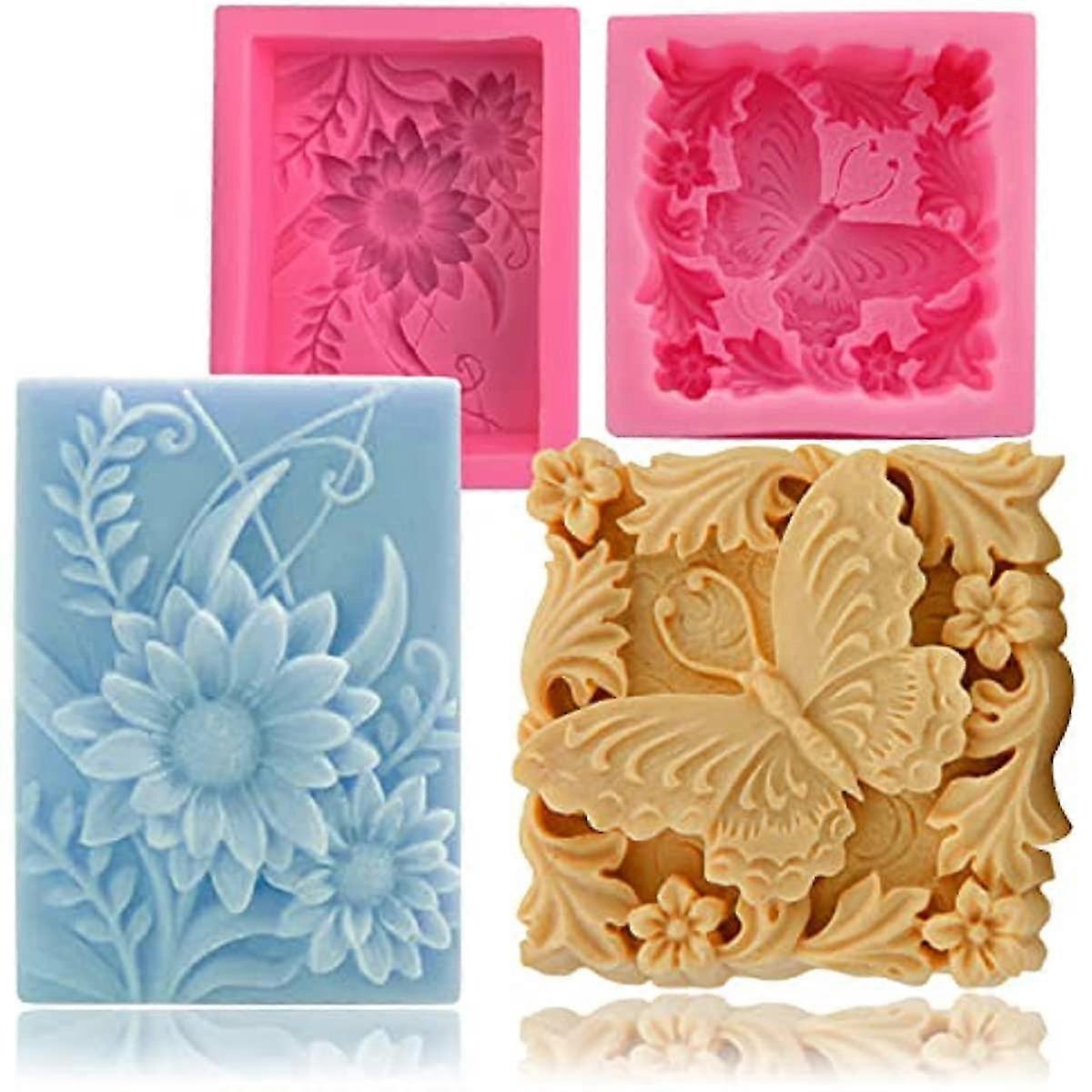 2 Pack Butterfly Flower Soap Molds For Soap Making 3d Floral Silicone Mold For Handmade Soaps Bath Bombs Lotion Bars Beeswax Candles Polymer Cla