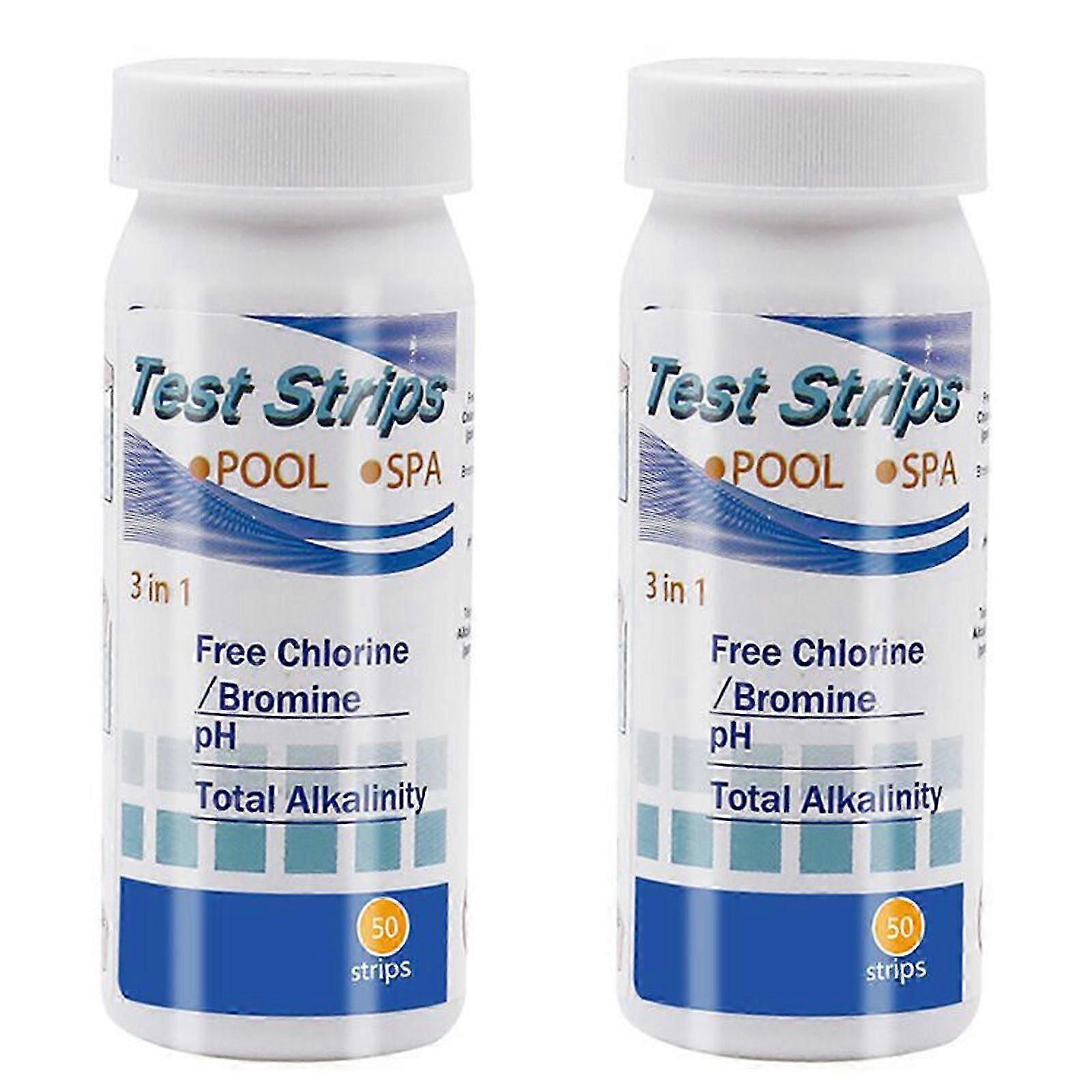 2 Boxes Of 3-in-1 Swimming Pool Strips, Chlorine, Ph, Alkalinity Test, 50 Strips Per Bottle