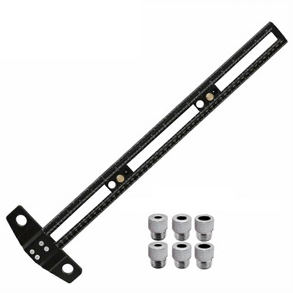 2 in 1 Drilling Positioning Scoring Ruler Aluminum Alloy Scriber Marking Gauge with 6/8/10mm Drill S