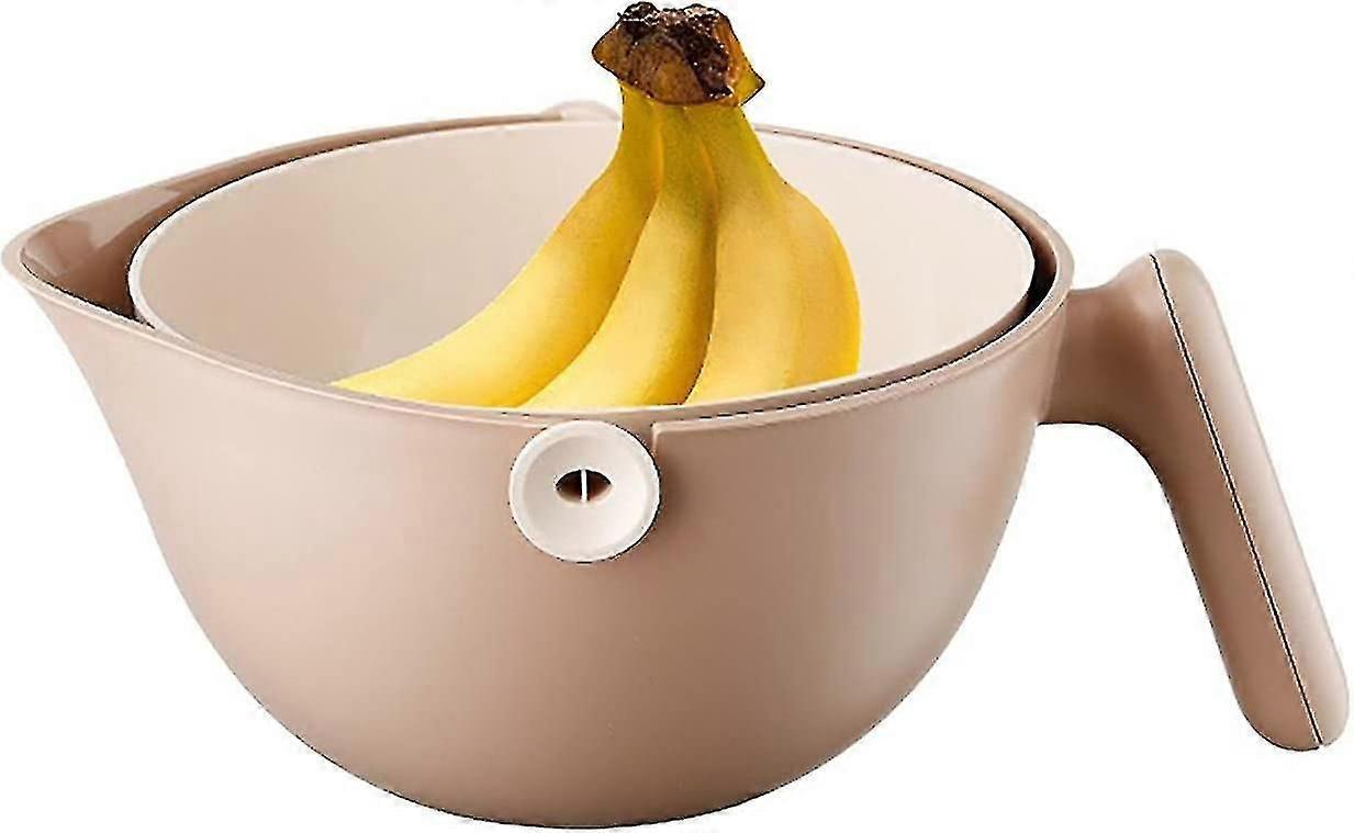 2-in-1 Plastic Pasta Colander Double Layer Rotating Basket for Fruits and Vegetables, Pink