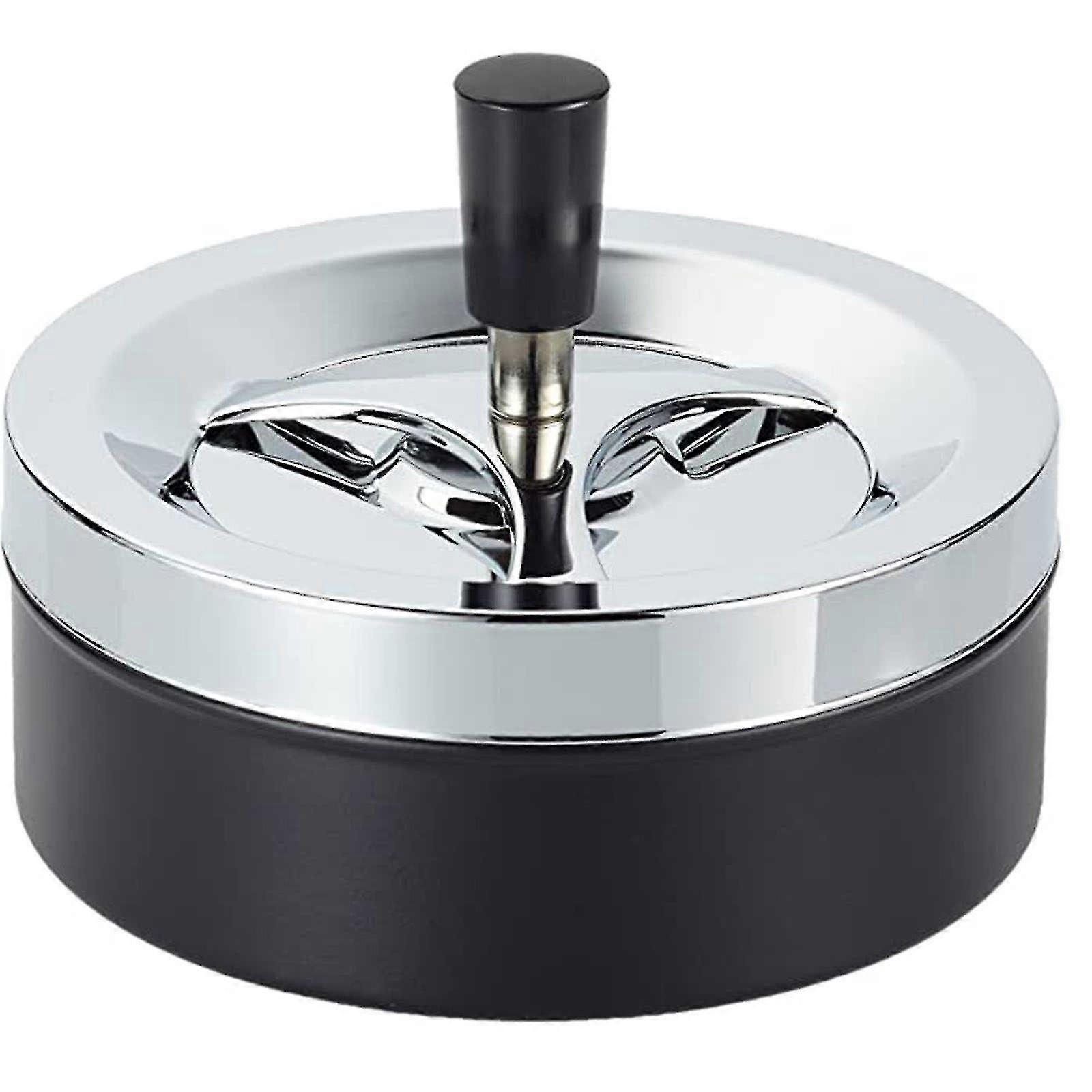 2pcs Ashtray Ashtray Round Push Down Cigarette Ashtray With Tray Spinning Ashless Ashtray Modern Ashtray Rotating Ashtray Metal Cigarette Ash Tr