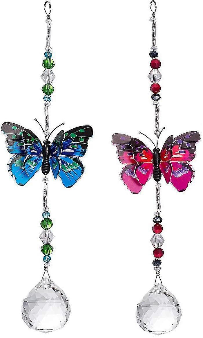 2 Pack Crystal Butterfly Rainbow Pendant Maker Car Rearview Mirror Hanging Ornament Decoration