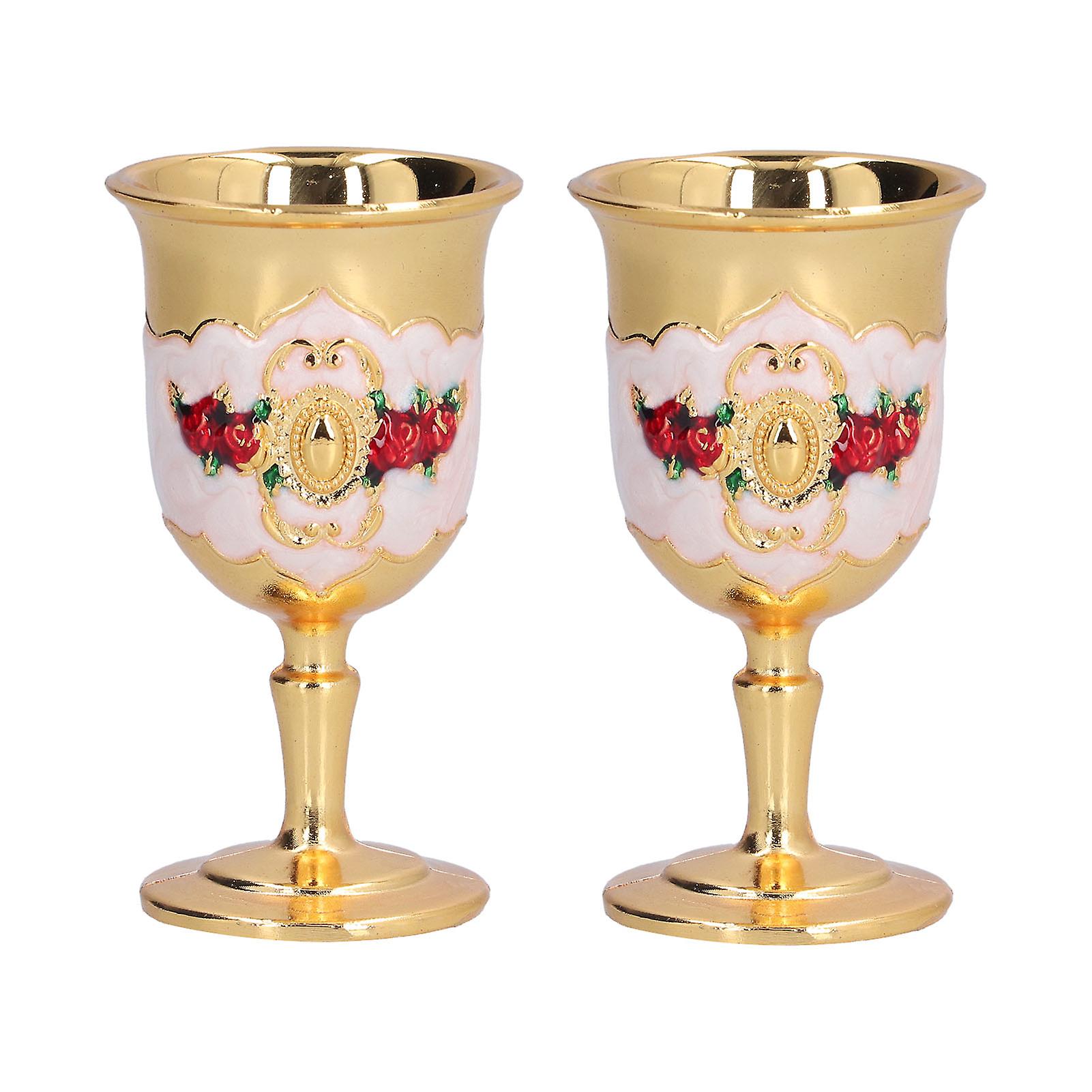2pcs Metal Goblets Exquisite Painted Flower Pattern Vintage Court Style Wine Glass for Bar Drinkware GiftGold, White