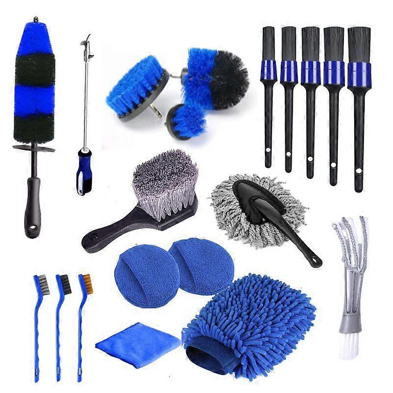 20 x Car Cleaning Set, Car Care Sets with Rim Brush, Detailing Brush, Wash Mitt, Microfibre Cloths, Wire Brush, Polishing Sponge for Interior and Exte