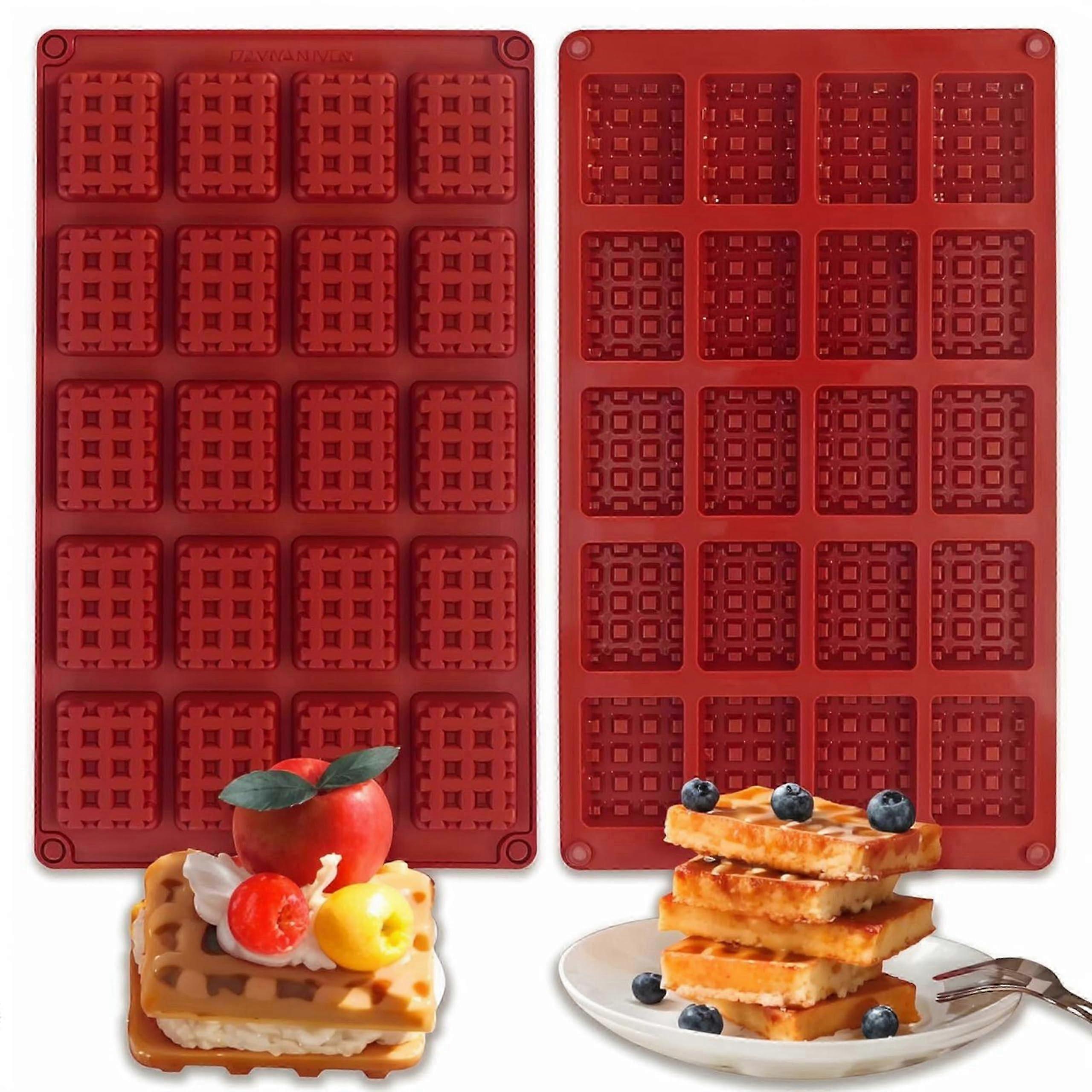 20Cavity Silicone Waffle Baking Pan Rectangular Lattice Pattern Brick Red Set of 2