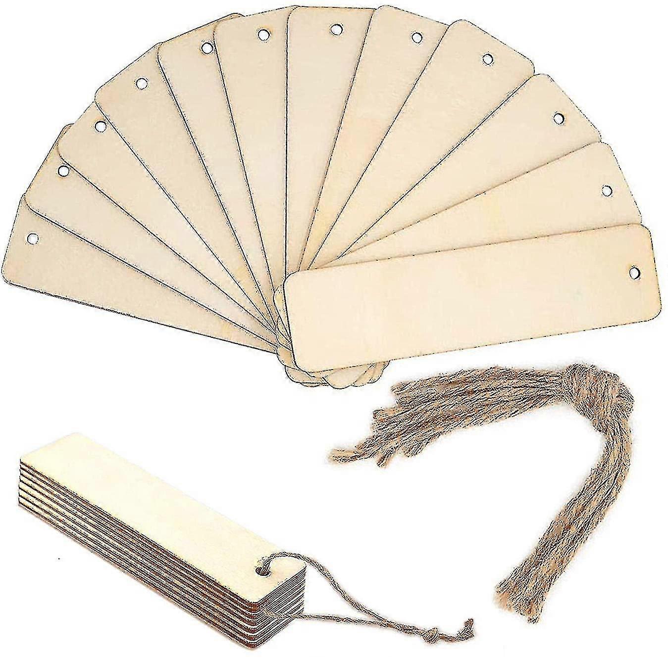 20 Pack Blank Rough Wood Hanging Bookmarks With Holes And Ropes For Diy Bible Reading, Wedding, Birthday Party, Handmade Decoration