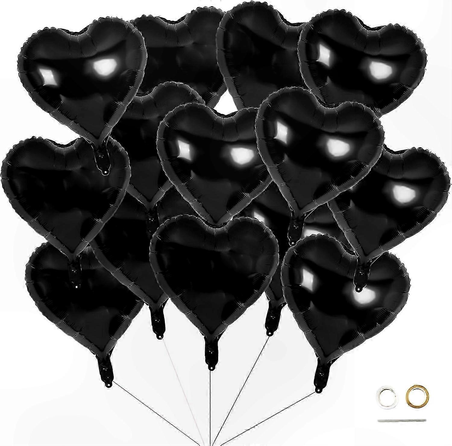 20-Pack Heart-Shaped Mylar Balloons, 18-Inch Black Foil Balloons for Party Decorations