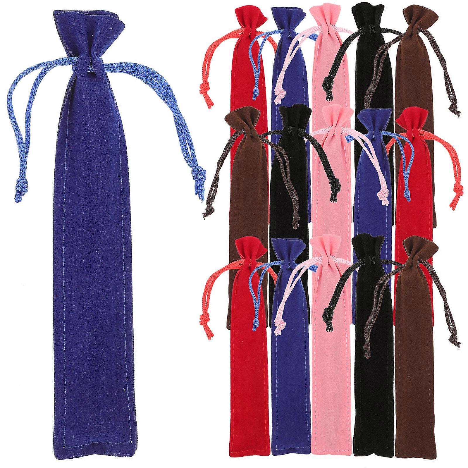 20pcs Drawstring Pen Pouch Flannel Pen Holder for Students Home Office School Multicolor Black Red Coffee Blue Pink Each Color