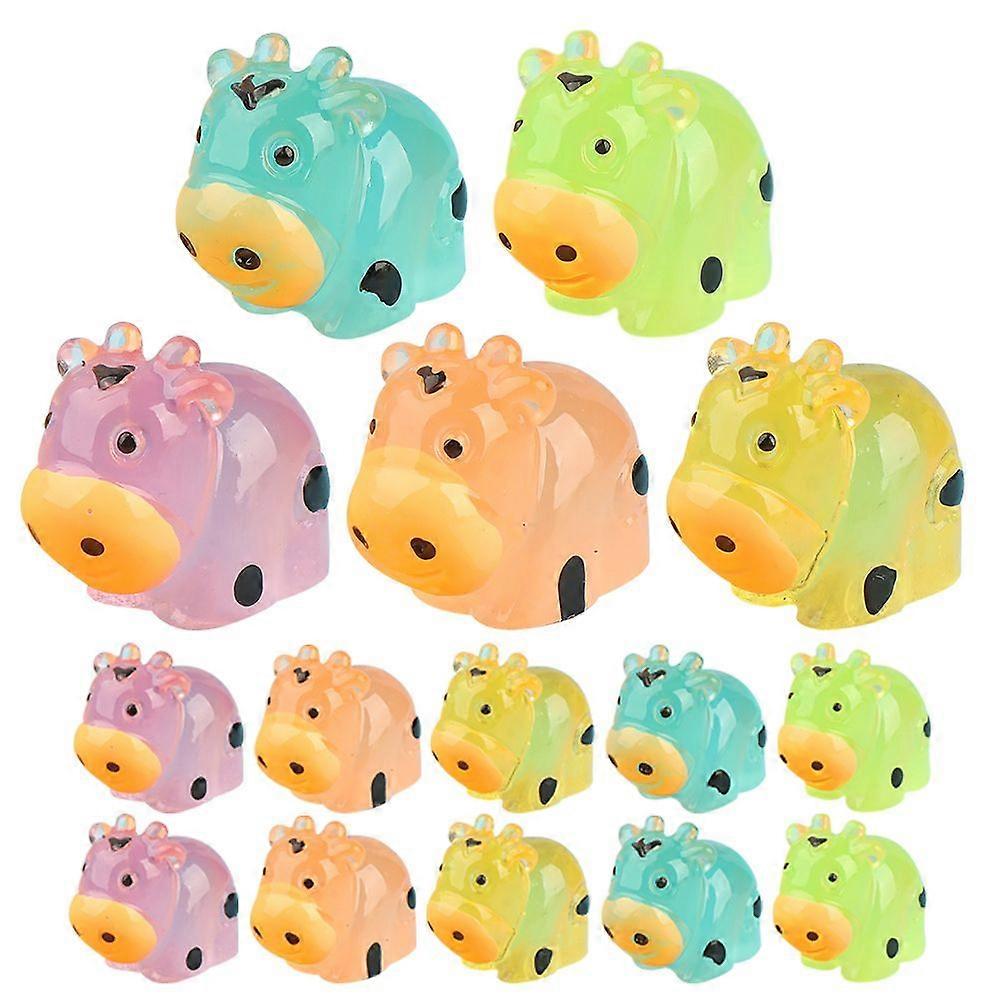 20pcs Cow Figurines Cartoon Cow Statues Resin Cow Crafts Luminous Cow Figurines Decors