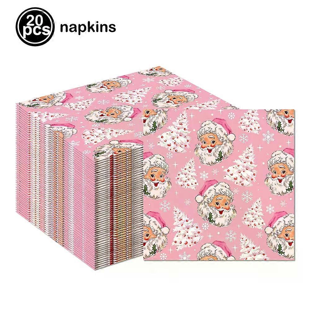 20pcs/Pack Christmas Cocktail Napkins Holiday Napkin with Santa Snowman Cardinals Tree for Xmas Marry Christmas Table Decoration