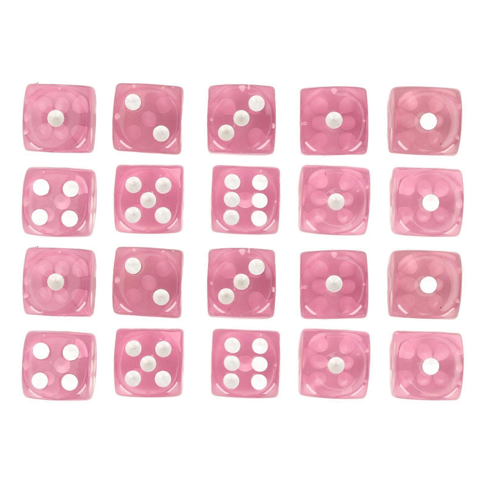 20pcs Dice Set 6 Sided Transparent Dices Rounded Corner Dice for Board Games and Teaching Math Pink with White Spots