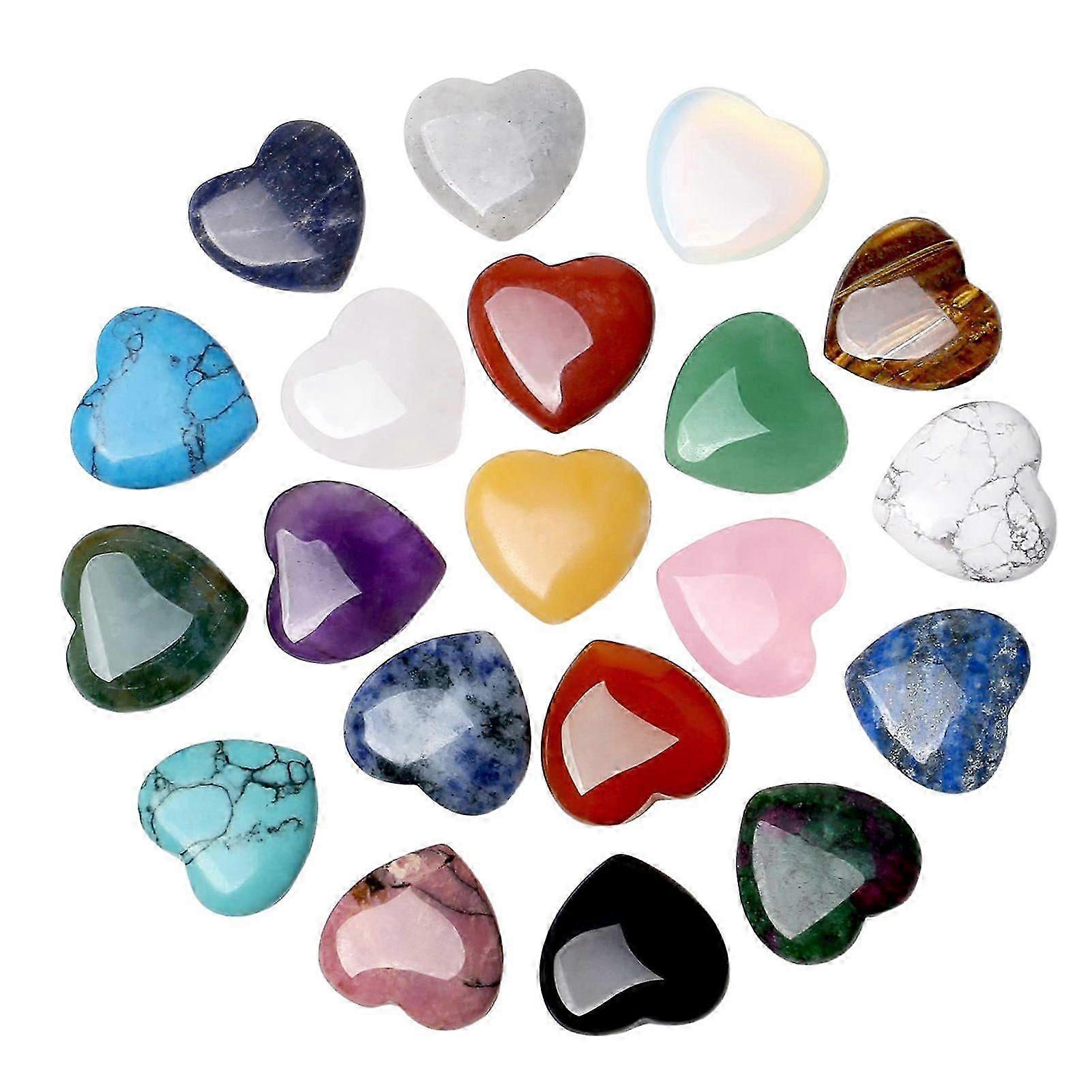 20Pcs Heart Gemstones Set Natural Romantic Love Stones Desktop Decoration Quartz Healing Stone Set Chakra Reiki Crystals for Meditation-Good