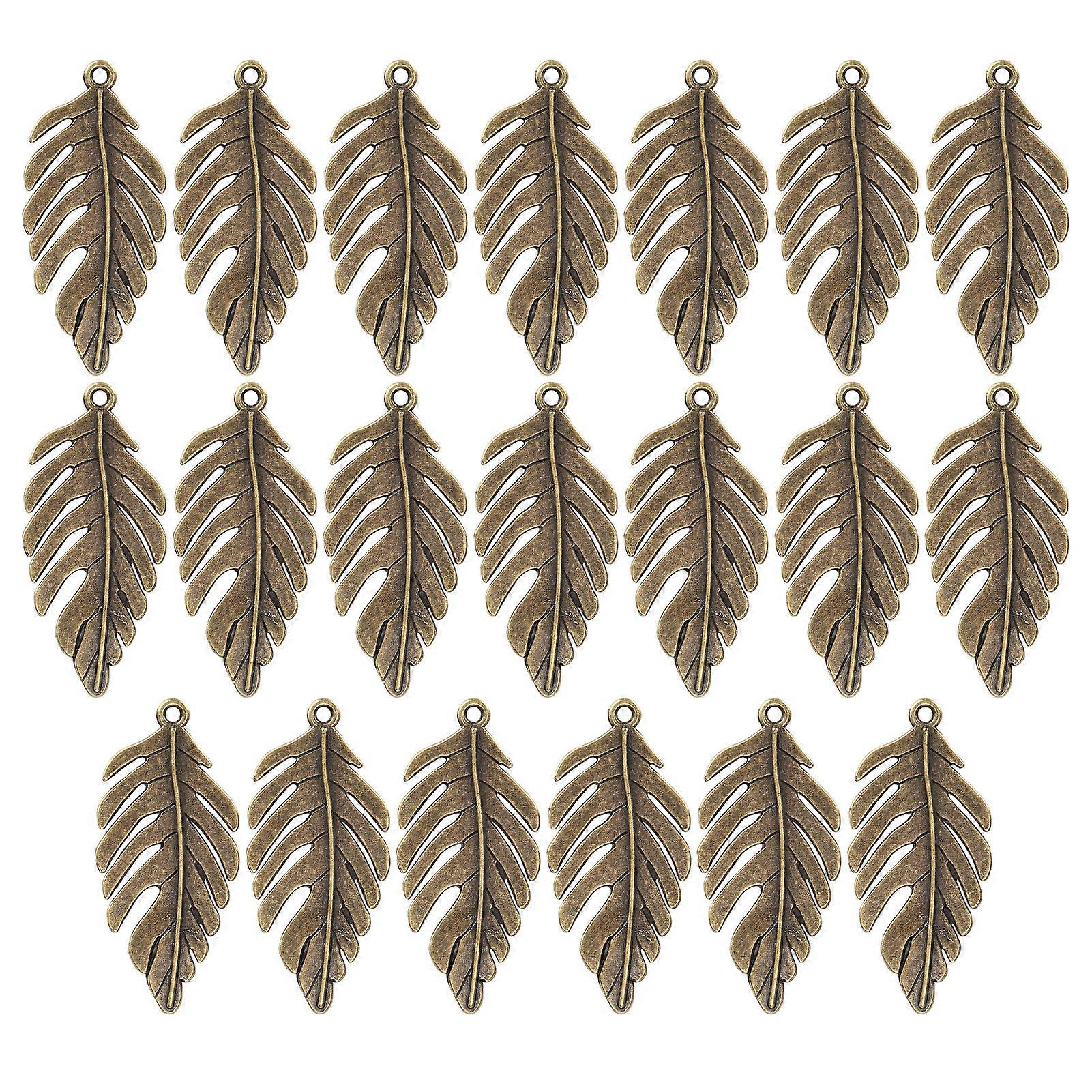 20Pcs Bronze Leaf Jewelry Accessories Alloy Pendant for DIY Handicraft Decoration
