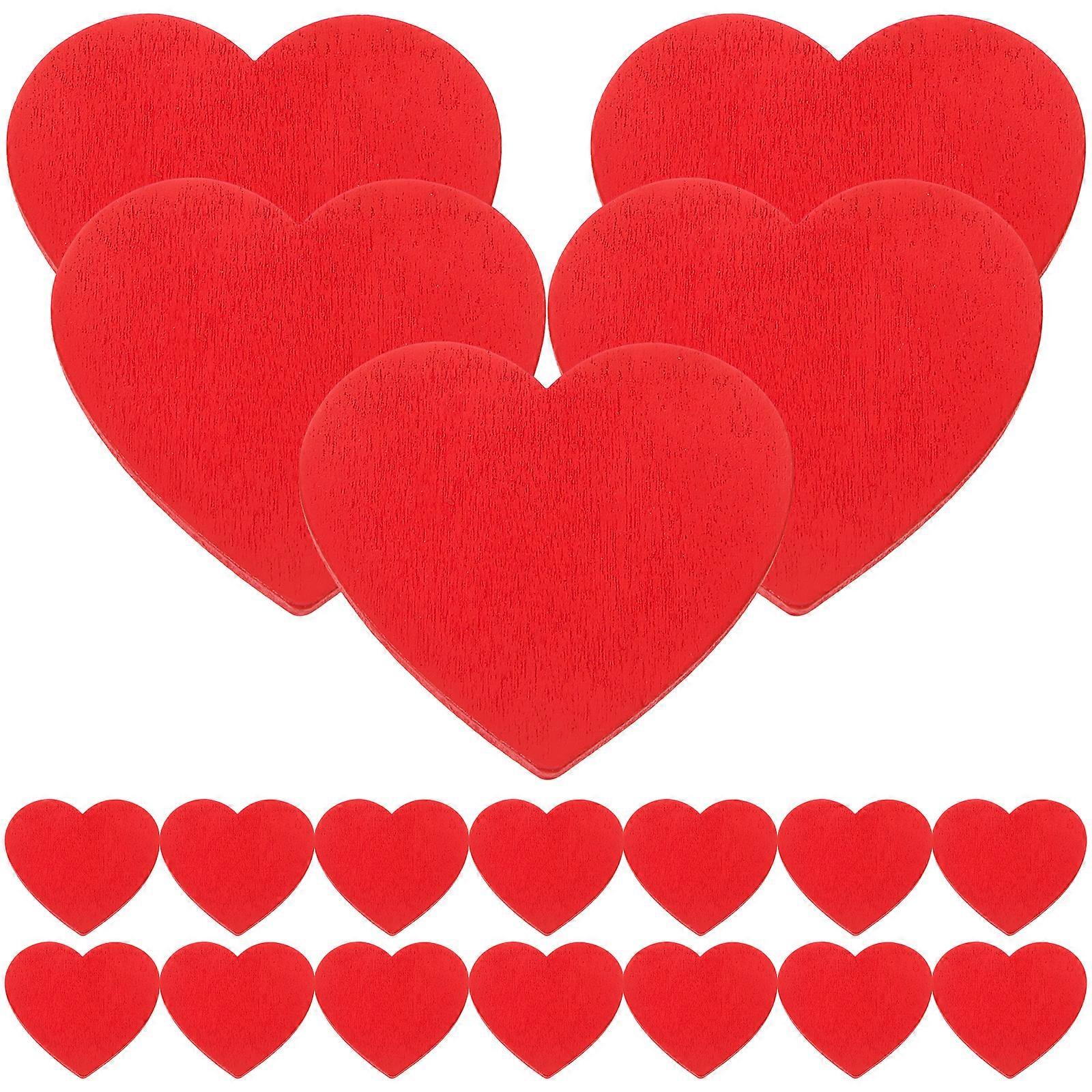 20pcs 5cm Red Love Heart Shape Wooden Slices Craft Accessary Wooden Pieces Ornament Wood Cutouts Wedding DIY Material Wooden Chip Without Hole