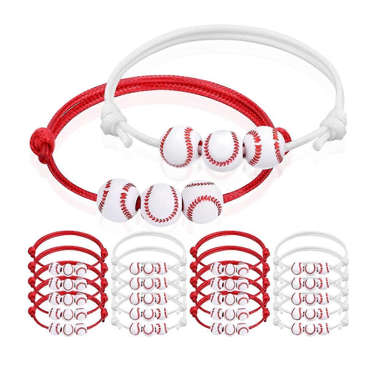 20pcs Baseball Party Favors Baseball Beads Red White Adjustable Inspirational Baseball Sport Gifts