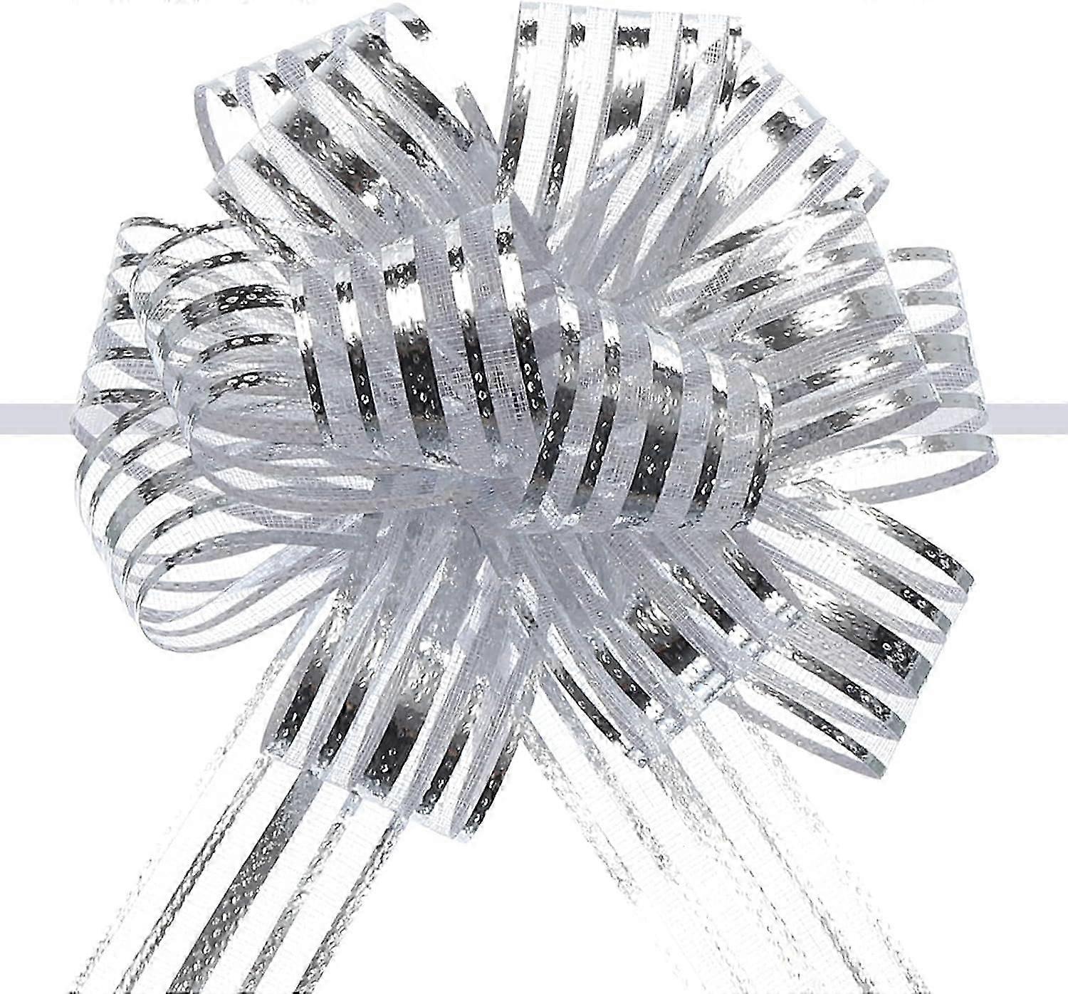 20pcs 4 Inch Organza Large Pull Bow Metallic Gift Wrapping Bows Ribbon Chiffon Yarn Silver for Wedding Presents Baskets Christmas