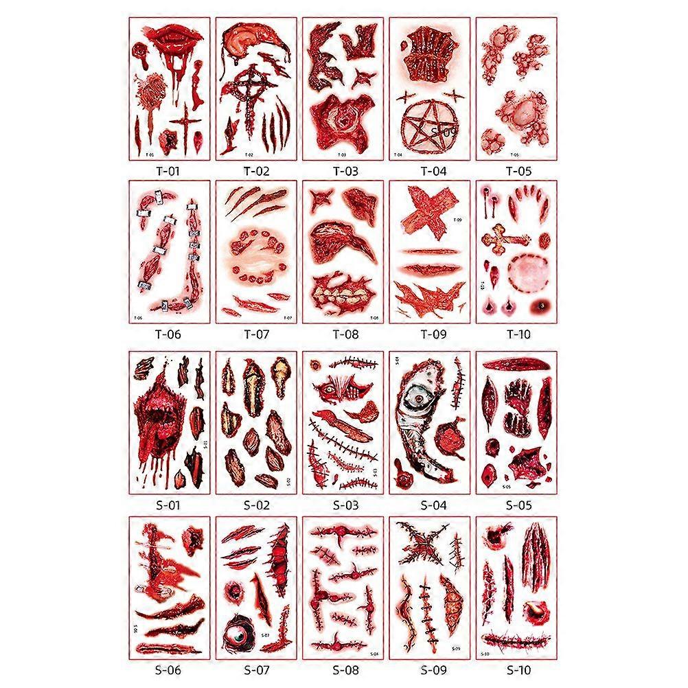 20 Sheets Halloween Face Sticker Scar Sticker Fake Scar Decal Bloody Stickers