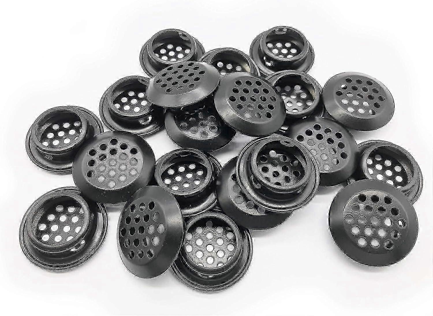 20Pcs Air Vents 25mm Circular Soffit Vent Stainless Steel Round Vent Mesh Hole Louver for Kitchen Bathroom Cabinet Wardrobe (Black)