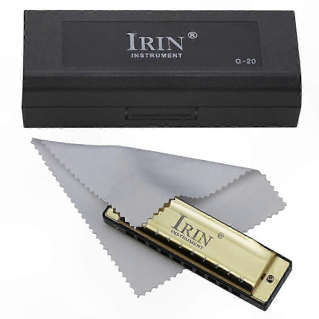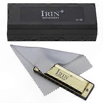 20-Tone G Key Harmonica with 10 Holes and Storage Box Golden Finish