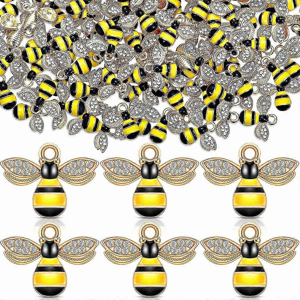 200 Pcs Enamel Bee Rhinestone Enamel Craft Embellishments Alloy Bee Pendant For Jewelry Making