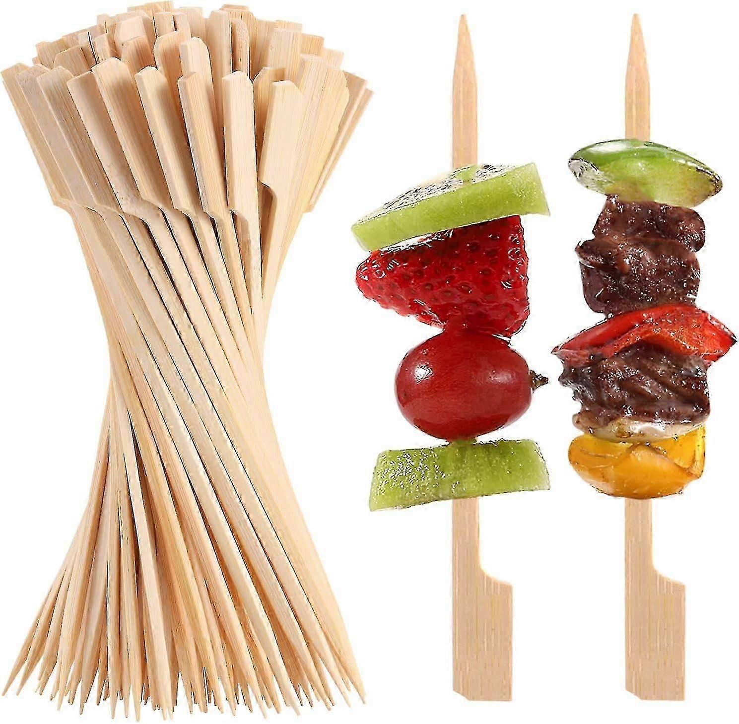 Description About this item Eco-Friendly- Appetizer skewers(12cm are made of natural bamboo that is highly renewable material . Non-toxic, food safe, tougher and stronger. High Quality Craft - Kabob sticks are screened and cleaned to ensure that there are no cracks and chips. Polished into a smooth arc. Semi pointed edge is sharp enough for piercing food. Paddle Design - The flat wide handle design of paddle skewers makes it easy to flip over. And it is stable enough to hold food, and doesnt spin or fall off. You can feel confidence to use our bamboo sticks Widely Application Scene - As a serving tool, Our bamboo skewers are perfect for appetizers, canapes, kebabs, grills, BBQ, sandwiches, mini burgers, chocolate fountain or even fruits. They can also be used as cocktail picks. Its a must have tool for caterers, parties, picnic and other occasions. Great Value Set - 200 pieces bamboo skewers are enough for you to arrange a home celebration. Packaged in a present case, and its a good gift for your family and friends.